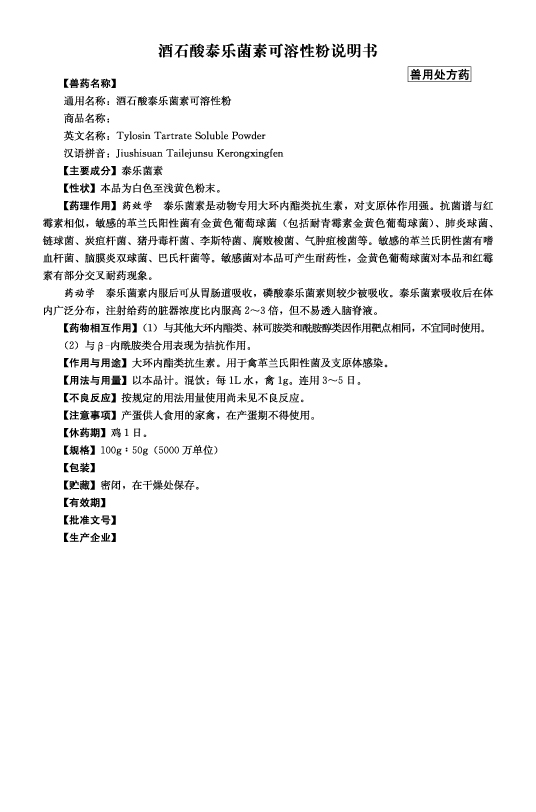 大环内酯类抗生素。用于禽革兰氏阳性菌及支原体感染。