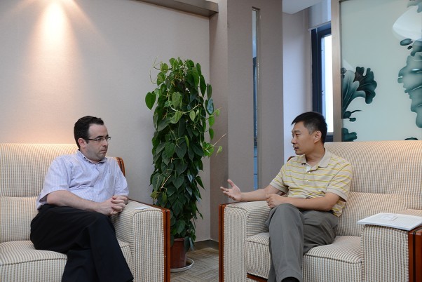 在双方会谈中,王学海董事长向李伟民总领事详细介绍了金年会|jinnianhui的创业历程、发展现状和战略愿景,并重点介绍了人福国际化高端人才引入机制、人福国际化战略的实施进展及现有成果。李伟民总领事对金年会|jinnianhui立足创新创业,大胆开拓国际市场、脚踏实地干事业的做法和理想抱负表示赞赏,并希望能促进双方在美国市场开拓、国际化人才交流上的深度合作,支持金年会|jinnianhui的国际化发展。