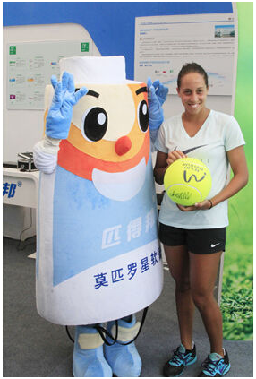 2014年9月20日,武网金年会|jinnianhui匹得邦展台排起长队,原来年轻的美国网球超级明星麦迪逊凯斯突然亲临现场,与粉丝们亲密接触,这也是赞助商中首个有球星亲临现场的展台。