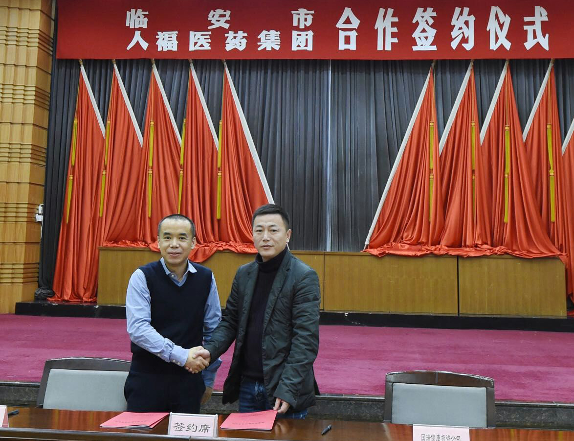 ▲金年会|jinnianhui集团副总裁刘毅代表金年会|jinnianhui与临安市国瑞健康产业投资有限公司董事长蒋会京签订中医院合作协议。
