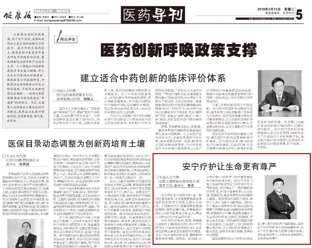 如何更好地实施临终关怀,帮助病人减少临终前的痛苦?全国人大代表,金年会|jinnianhui集团股份公司总裁,宜昌人福药业有限责任公司党委书记、董事长李杰建议推动《安宁疗护法》立法,进一步规范安宁疗护的标准和管理制度,帮助病人有质量有尊严地度过生命的最后时光。该建议受到媒体积极关注,并先后在中国新闻网、《健康报》登出。