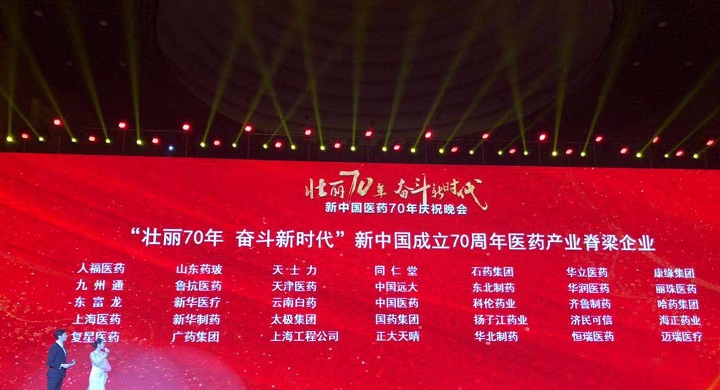 10月8日至10日,“2019中国医药企业家科学家投资家大会暨新中国成立70周年医药产业发展成就展”在北京举行。大会同期举行了“中国医药上市公司竞争力颁奖典礼”“中国医药创新企业100强发布”“壮丽70年,奋斗新时代”新中国医药70年纪念晚会、海内外医药创新公司投融资路演等多项活动。金年会|jinnianhui集团党委副书记、副总裁、董事会秘书李前伦应邀代表集团参会。会上,金年会|jinnianhui集团获“壮丽70年 奋斗新时代”新中国成立70周年医药产业脊梁企业、“中国医药创新企业100强(第19位)”两项殊荣。