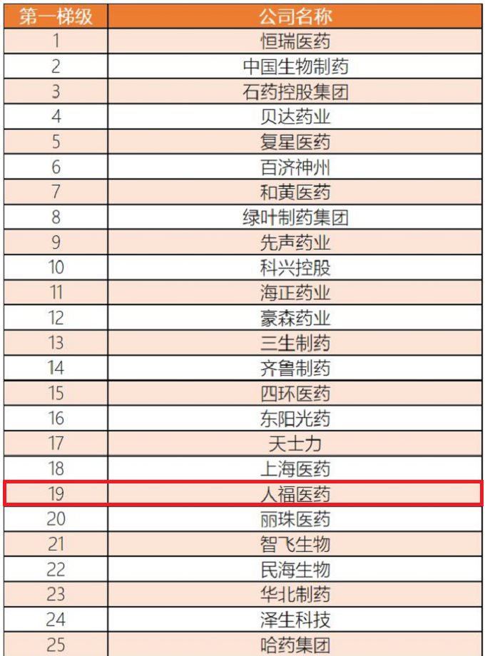 中国医药创新企业100强榜(部分)