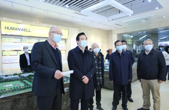 在金年会|jinnianhui集团总部,邓霞飞向黄楚平汇报了集团在2020年面对特殊的考验,助力打赢战疫、战洪、战贫三场硬仗的情况,介绍了集团坚定“做医药细分市场领导者”,以研发创新为先导,布局“7+5”产品线的发展战略和产业布局。作为湖北省、武汉市两级新冠肺炎疫情防控指挥部物资保障平台,金年会|jinnianhui集团疫情期间累计为全省提供口罩、防护服、护目镜、消杀产品等6000多万件,同时捐款捐物总价值逾4800多万元;武汉入汛以来,金年会|jinnianhui集团始终关注防汛一线,为驻扎在江堤的花山街道、关东街道380名党员干部和防汛人员送去了防暑防晒、防蚊虫叮咬等药品;2020年,金年会|jinnianhui集团对口帮扶的3个村、自愿结对帮扶的35个村近千名贫困村民全部脱贫,集团旗下宜昌人福药业荣获全国“万企帮万村”精准扶贫行动先进民营企业称号。