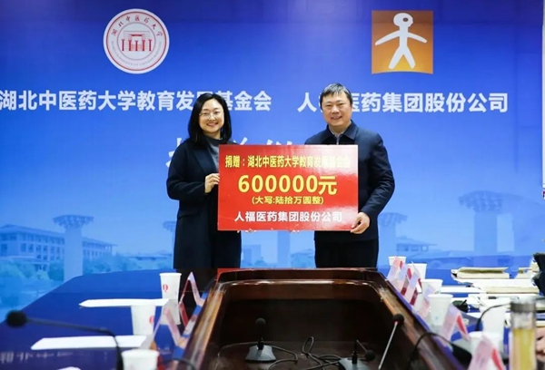 3月23日,金年会|jinnianhui集团与湖北中医药大学教育发展基金会举行捐赠仪式,金年会|jinnianhui集团旗下武汉人福医疗管理有限公司向湖北中医药大学教育发展基金会捐赠60万元。捐赠将在学校教育发展基金会设立“武汉人福医疗专项基金”,用于大学生创新创业项目扶持,培育创新创业成果;支持中医药产业发展相关的人才培养;助力校友活动。湖北中医药大学党委书记唐峻,湖北中医药大学校长、教育发展基金会副理事长吕文亮,湖北中医药大学副校长、教育发展基金会副理事长黄必胜,湖北中医药大学校党委常委张子龙,金年会|jinnianhui集团总裁邓霞飞、金年会|jinnianhui集团党委副书记孔娜、武汉人福医疗管理有限公司董事长曾志敏等领导共同参加捐赠仪式。