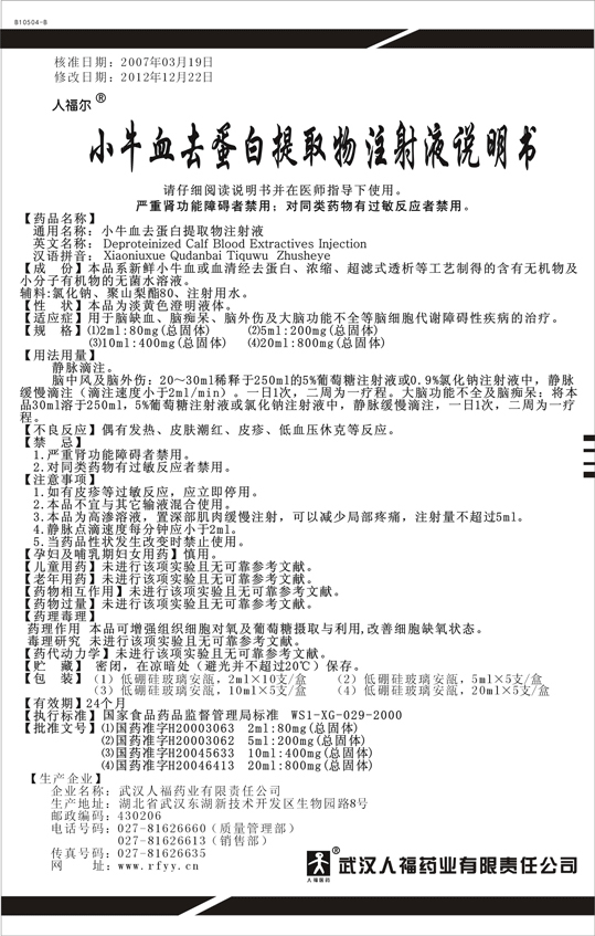 用于脑缺血、脑痴呆、脑外伤及大脑功能不全等脑细胞代谢障碍性疾病的治疗。